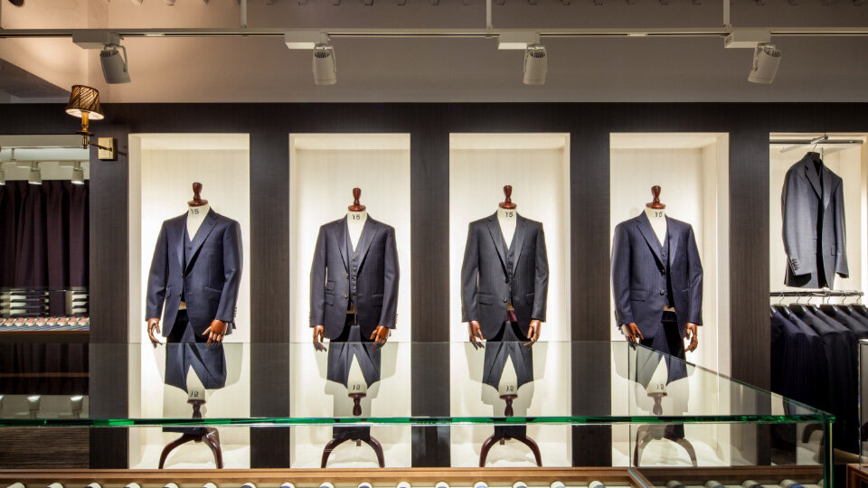 1972(昭和47)年創業のオーダーメイドスーツ店。常に高い技術でお客さまの満足感を考え、1mm単位のサイズ調整を行う職人技は高い評価を得ている。