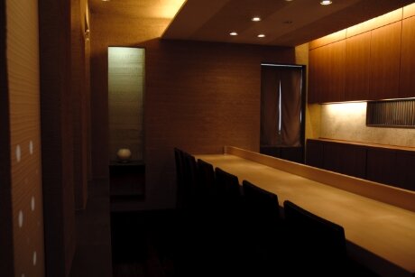 歌舞伎座の裏路地にあり、ミシュラン一つ星を連続獲得した注目の店。店主の藤田千秋さんは、静岡・修善寺の人気店「朴念仁」で研鑽を積み、その後独立。