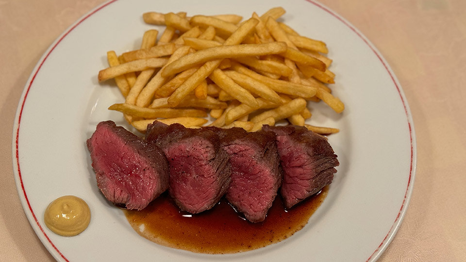 自慢のワインはフランス産を中心に200種類以上のラインナップがあり、価格もグラスワイン650円〜や、4,398円均一のボトルワイン等が用意されており、リーズナブルに楽しめる。これ以外にもワインリストには常時70〜80種がラインナップされ、北フランスやブルゴーニュ、ボルドーなど地域別で紹介されており、ワイン初心者でも選びやすいようになっている。ともに味わう料理は、ランチならば好きなメインディッシュが選べ、前菜もつく平日限定の日替わりランチ1,210円、夜はコース4,280円〜のほか、北海道産蝦夷鹿もも肉のローストや、本日の鮮魚のローストなど、国内の厳選食材を使った一皿が並ぶ。