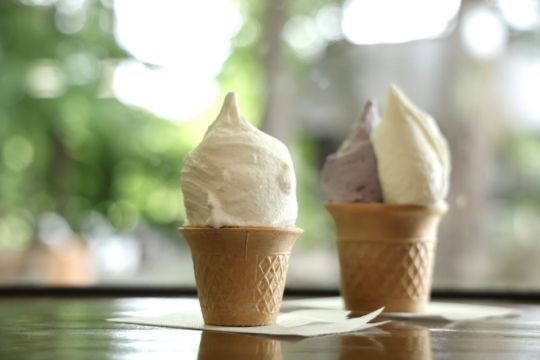 酪農を営むオーナー夫婦が、ミルクのおいしさを知ってもらおうとオープン。常時14種類あるジェラートは、毎朝農場から届く搾りたてのミルクを基本の味としている。雫石の旬の野菜や果物、自社農園で栽培した玄米など地元産の食材を合わせ、オリジナルの味をラインナップ。2種類の味を楽しめるダブル420円が人気で、2階のイートイン席、屋外のテラス席でゆっくり味わいたい。