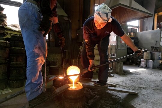 岩鋳鉄器館で南部鉄器の製造工程を見学