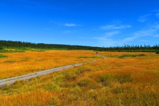駐車場がある八幡平山頂レストハウスを起点に、約1時間の散策から約3時間30分の本格登山まで、体力や時間に合わせてトレッキングコースを選ぶことができる。散策路はきれいに整備された木道が続くので歩きやすい。おすすめは、頂上から八幡沼を通り、源太森を歩くコース。火山湖である八幡沼や、辺り一面を覆う草紅葉が美しく、山ならではの圧巻のスケールの中を歩き進められる。