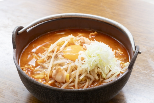 街のラーメン店にとどまらない柳家は、「麺づくりは、小麦づくりから」を掲げ、10年以上前から自社農園で小麦「ゆきちから」を栽培。50周年を迎えた柳家の全店舗で提供する麺だ。定番の一つ「キムチ納豆ラーメン」は、納豆を混ぜ合わせてさらに発酵させた味噌を使ったスープに、ほどよい辛さのキムチが加わって絶妙なブレンド。独自の完全自家製麺とともに何度でも味わいたい奥深さだ。
