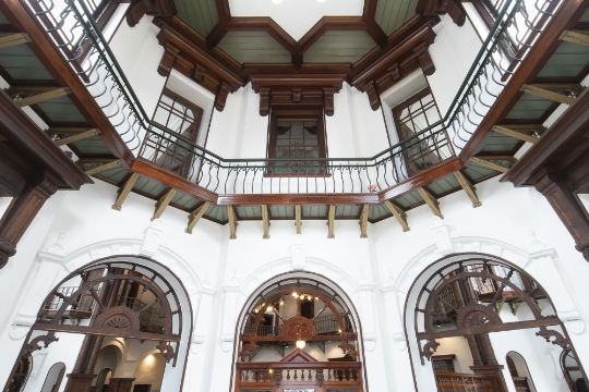 1911(明治44)年完成の岩手銀行(旧盛岡銀行)旧本店本館は、東京駅丸の内駅舎の設計者・辰野金吾と盛岡出身の葛西萬司によるもの。1994(平成6)年、現役の銀行として初めて国指定重要文化財となった後も、2012(平成24)年に役目を終えるまで100年余り銀行業務が続いた。赤レンガをはじめ大理石の営業台、接客用の上げ下げ窓口、鋼の扉や回廊、欄間装飾など洗練された歴史的なデザインだ。