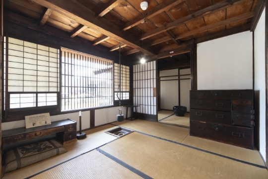 盛岡出身の歌人・石川啄木が1905(明治38)年20歳の新婚時代に3週間を過ごした住宅。武家屋敷を間借りして家族5人で暮らした折、岩手日報に随筆『閑天地』を連載。「我が四畳半」と題し新婚の夢あたたかな情景のほか、「この机のみは我が独占也」などと当時の生活ぶりを描いている。新郎不在の結婚式を挙げた部屋、新聞を読み低い天井を眺めていた姿など、想像を膨らませて。