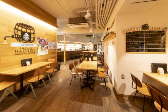 クマのイラストが目を引く「ベアレン」は、盛岡発祥のクラフトビール。全国からビール好きが集う"ベース"では、常時6種類の工場直送の生ビールを味わうことができる。2023年11月、国際ビールコンクール「Finest Beer Selection 2023」国際ビール部門で世界1位となった「Schwarz(シュバルツ)」は、贅沢な味わいとスッキリとした後味が絶妙な「黒のラガー」だ。ビールと合わせたい料理も豊富で、地域食材を使ったメニューが多いのもポイント。