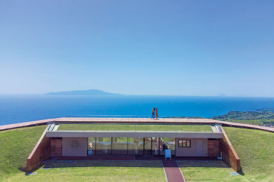 標高321mの小室山山頂にある遊歩道とカフェを備えた施設。山頂にはぐるりと木製の遊歩道が設けられ、散策しながら伊東市街地、相模灘、富士山などの絶景を望めるパノラマビューが自慢だ。併設の「Café・321」では、地層をテーマにした地層カフェラテ、海と空をイメージしたヨーグルトフラッペ(ブルー)が一押し。