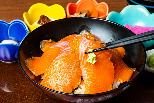 天城山系の湧水で飼育された淡水魚「天城 紅姫あまご」を使った料理を提供する。人気メニューの「紅姫あまごの漬け丼」は、秘伝のタレに漬け込んだ紅姫あまごをたっぷりと盛り付けた一品。脂がたっぷり乗っている身は、甘さとコクを感じさせる。ほかにも紅姫あまごの焼き物や天ぷらなどがセットになった「あまご御膳」2,750円~、あまご天重1,650円と、幅広いアマゴ料理を堪能できる。