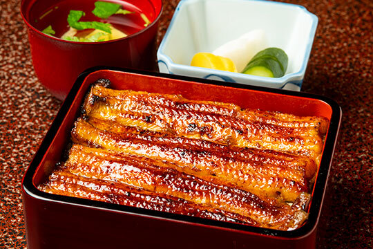 1856(安政3)年創業の老舗で行列必至の超人気店だ。使用するウナギは、富士山の伏流水で3~4日ほど泳がせることで、余分な脂肪を燃焼させ、冷たい水で身を引き締める。焼き上げた際にふっくらとした食感と食べ応えを楽しめるのが特徴だ。長年継ぎ足しで使用してきたタレは、甘さ控えめでウナギの風味をしっかりと引き立てている。うなぎ丼5,280円~、うなぎ重箱5,280円~。
