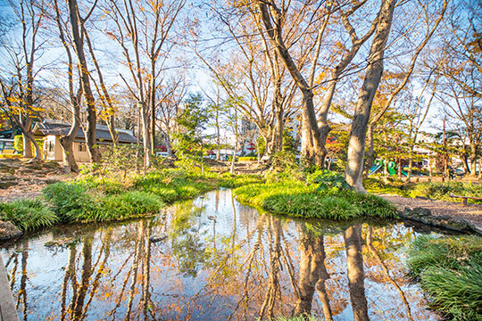 楽寿園の東側に位置し、清らかな桜川が目の前に流れ、木々が生い茂る自然豊かな公園。園内には、ゴツゴツとした富士山の溶岩が露出しているので足元に気を付けながら散策しよう。白滝公園から三嶋大社までの川沿いの歩道は、太宰治や若山牧水など三島にゆかりのある文学者たちの詩や句碑などが並び、文学散歩も楽しめる。
