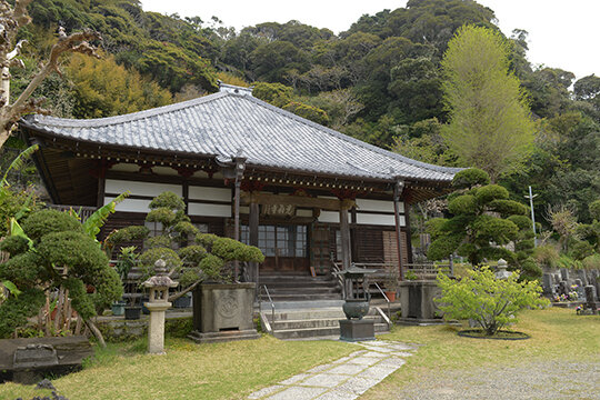 慶長年間(1596~1615年)に、勝浦藩主であった植村土佐守泰忠によって開基されたという。植村家の3代泰朝、4代忠朝、5代正朝の墓といわれる宝筺印塔(ほうきょいんとう)が残り、市の文化財に指定されている。また本堂には、江戸時代に彫刻の名人とうたわれた波の伊八(武志伊八郎信由)の欄間が残されている。勝浦朝市の歴史を示す定書も奉納され、勝浦の歴史を物語る古刹だ。