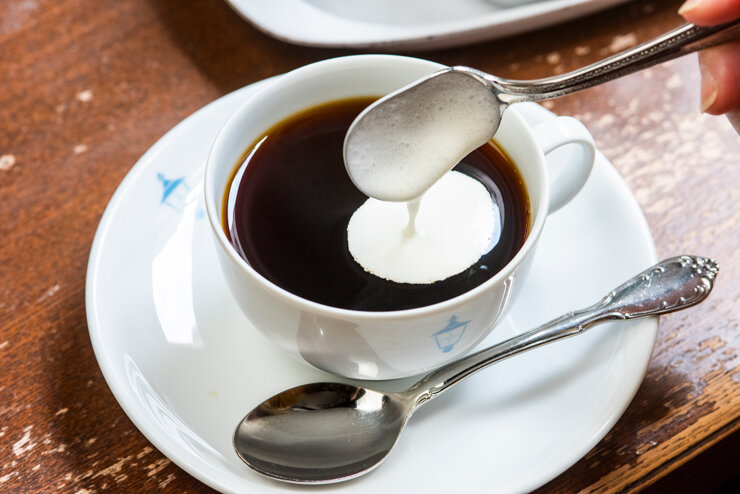 コーヒーは、厳選されたブルーマウンテンをベースに上質なコーヒー豆をバランス良くブレンドしたオリジナル。コーヒークリームとコーヒークリームを半立てしたホイップクリームの2種類が付く。クリームをたっぷり入れて、ミルクコーヒーにして飲むのが十番館流。まろやかで優しい味わいが楽しめるので、「コーヒーはいつもブラック」という人にもぜひ試してみてほしい。