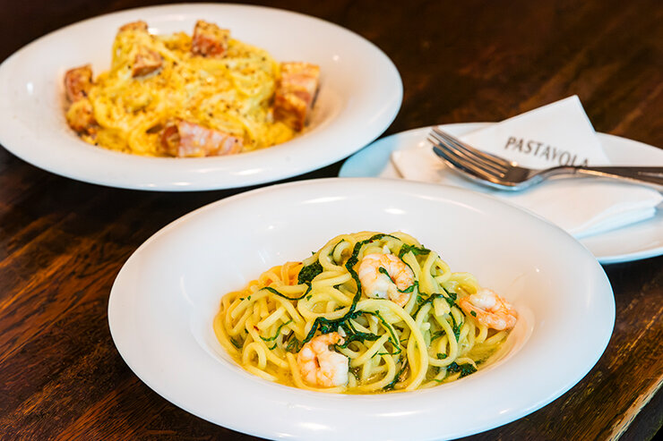 カウンター席のみで女性一人でも利用しやすく、アットホームな雰囲気も魅力。夜勤明けによく訪れています。青じそと小エビのペペロンチーノはさっぱり、クラシック・カルボナーラは濃厚ですが、飽きずに最後まで食べられるおいしさです。どちらも、モチモチ食感の太めの生パスタを使っていて、食べ応えがあります。